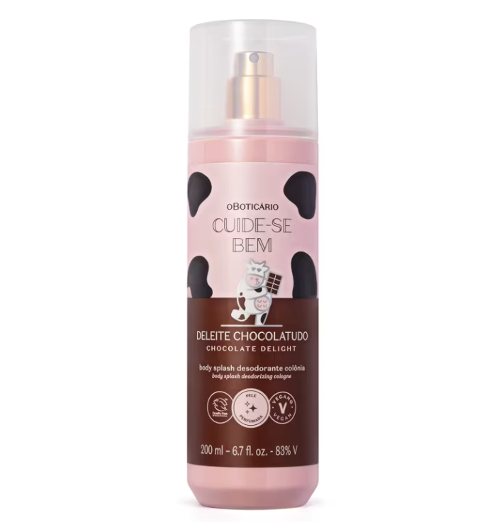 O Body Splash Desodorante Colônia Cuide-se Bem Deleite Chocolatudo te convida a mergulhar na cremosidade do chocolate na sua rotina de cuidados com a pele, numa aventura indulgente e adocicada!